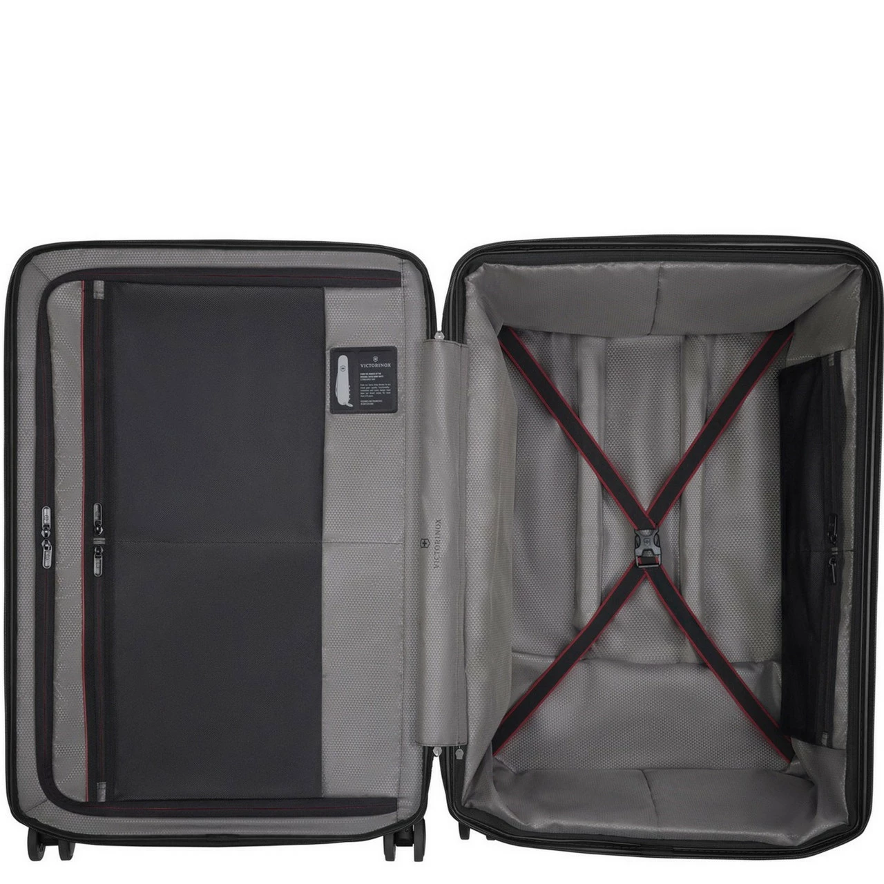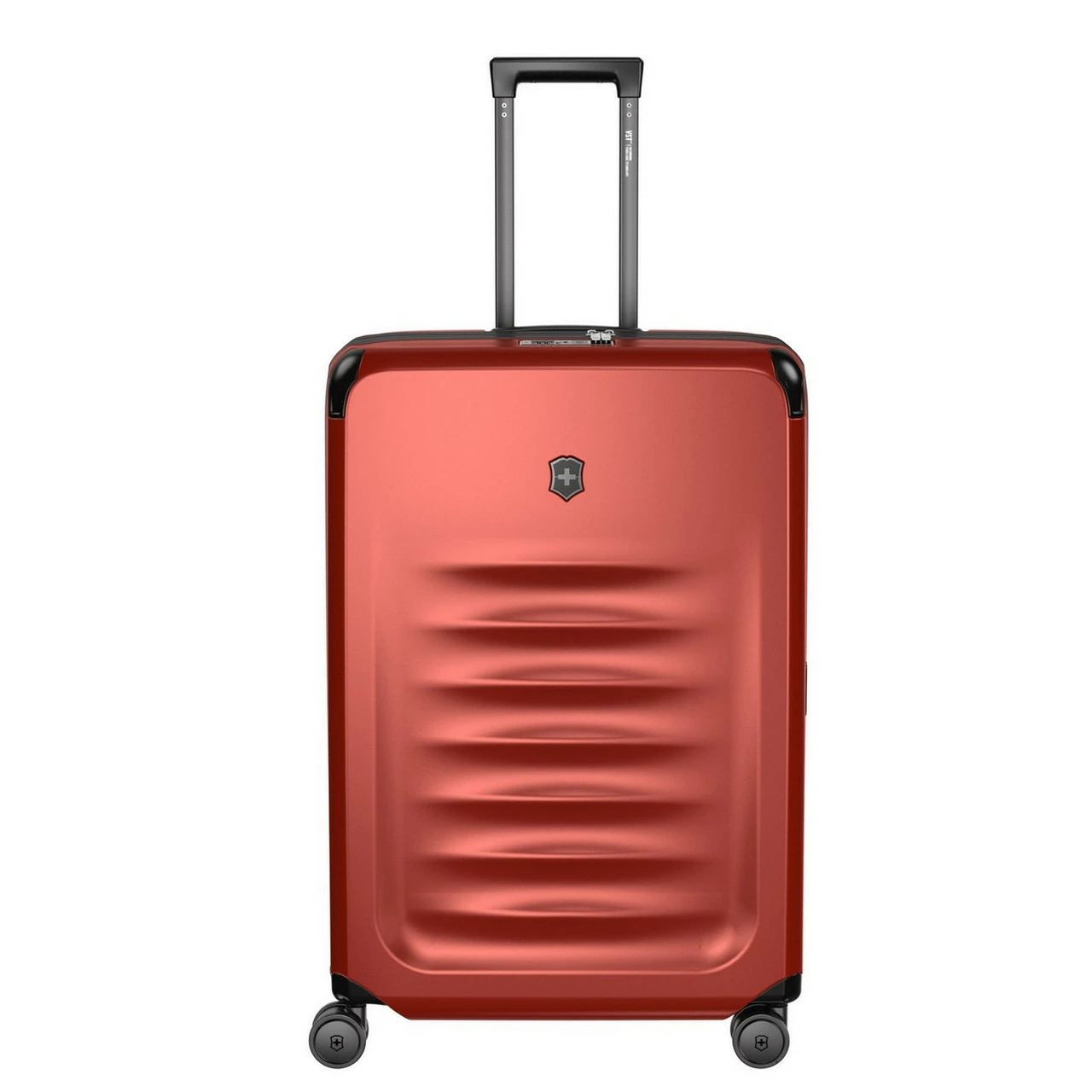 - Push button telescopic wheel handle with Victorinox Stabilizing Technology (VSTâ„¢)